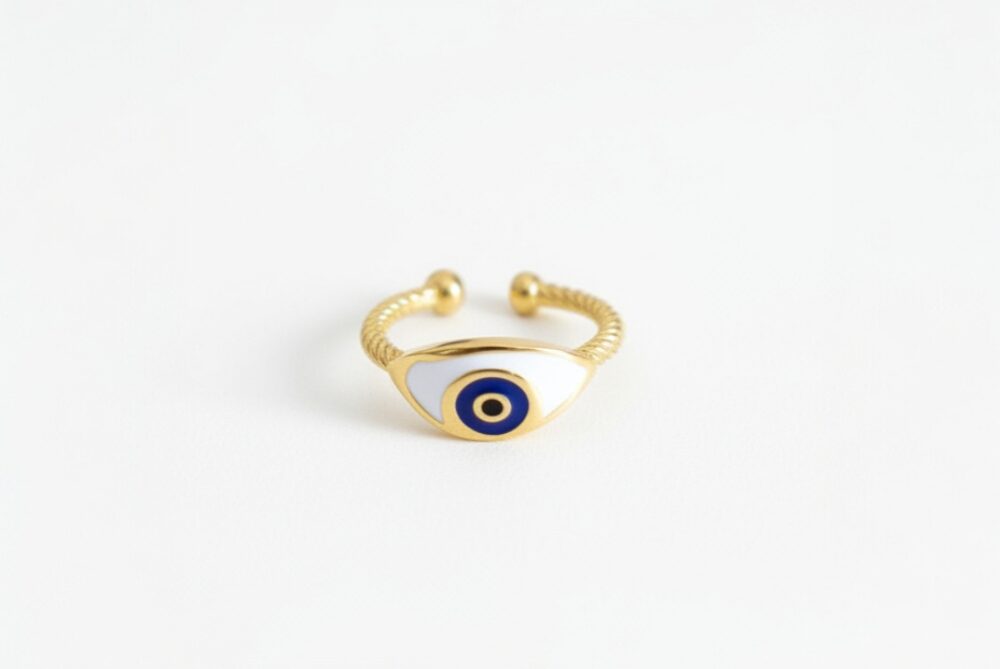 Χειροποίητο δαχτυλίδι ματι απο επιχρυσωμενο ασημι 925 και χρωμα απο σμαλτο (ανοιχτο απο κατω)
