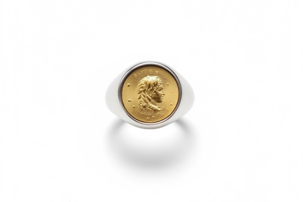 Χειροποίητο δαχτυλίδι μεγας αλεξανδρος απο ασημι 925 η βαση κ επιχρυσωμενο ασημι 925 το κεφαλι