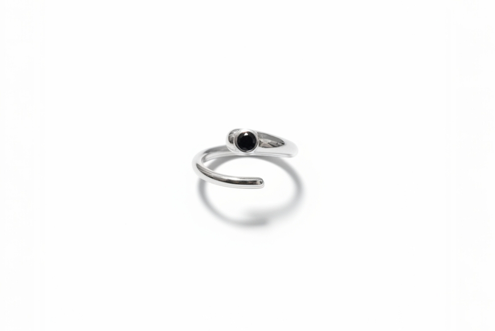 Χειροποίητο δαχτυλίδι σπο επιπλατινωμενο ασημι 925 με μαυρη πετρα ζιργκον