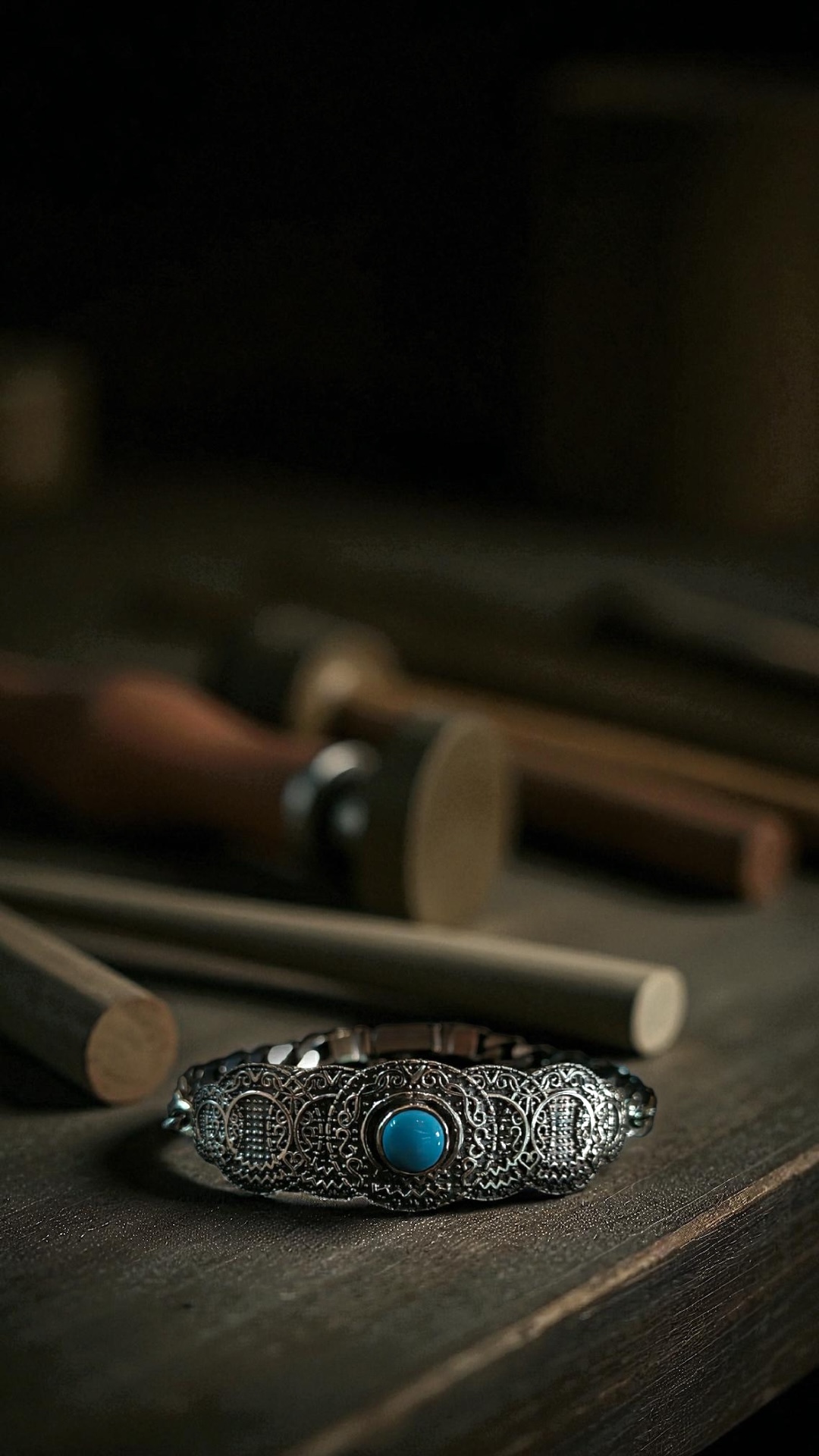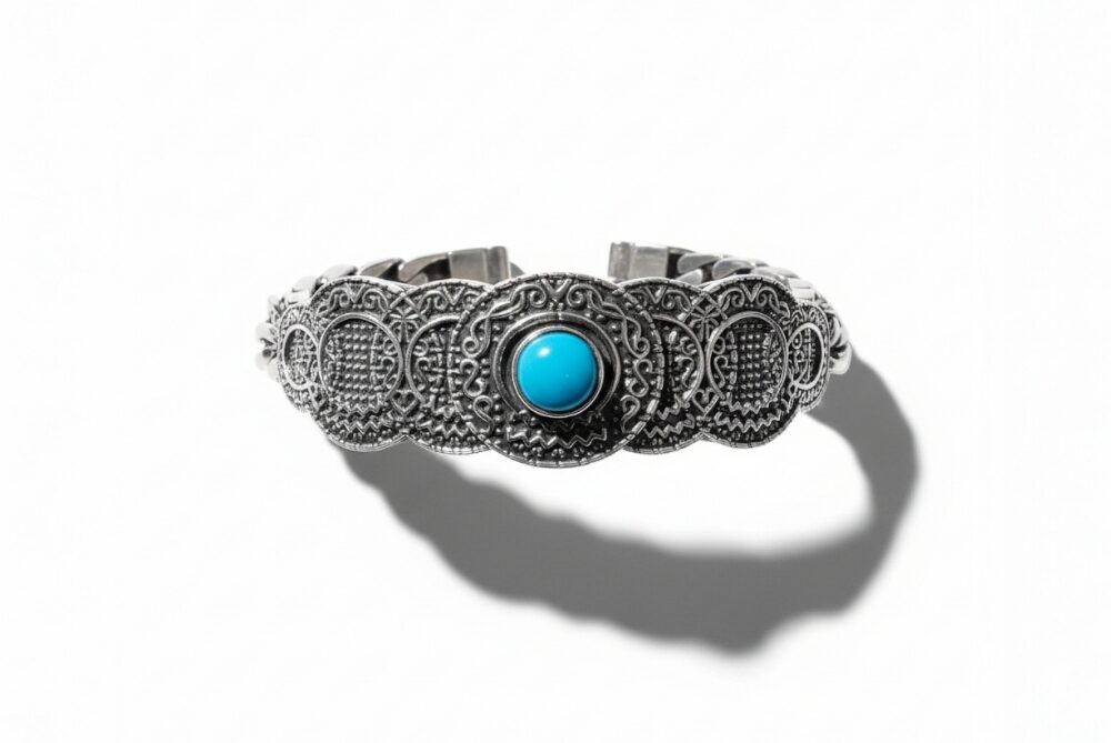 Χειροποίητο βραχιόλι σκαλιστό με πέτρα τυρκουάζ στο κέντρο απο ασημι925