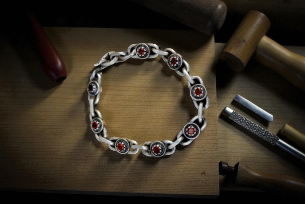 Chain rossete with red granade