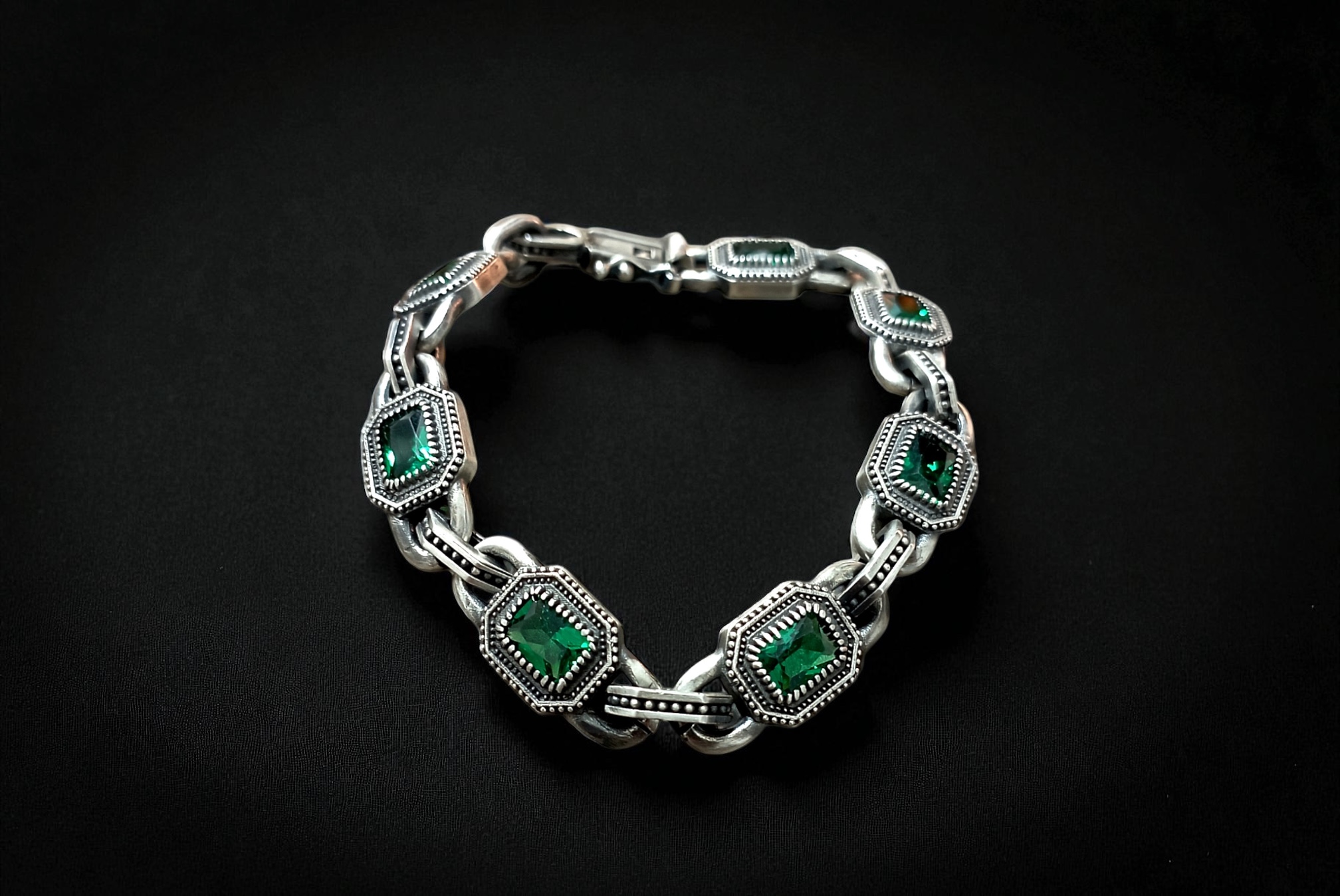 Χειροποίητο βραχιόλι αλυσιδα  απο ασημι 925  με ταγε πέτρες από ζιργκον
