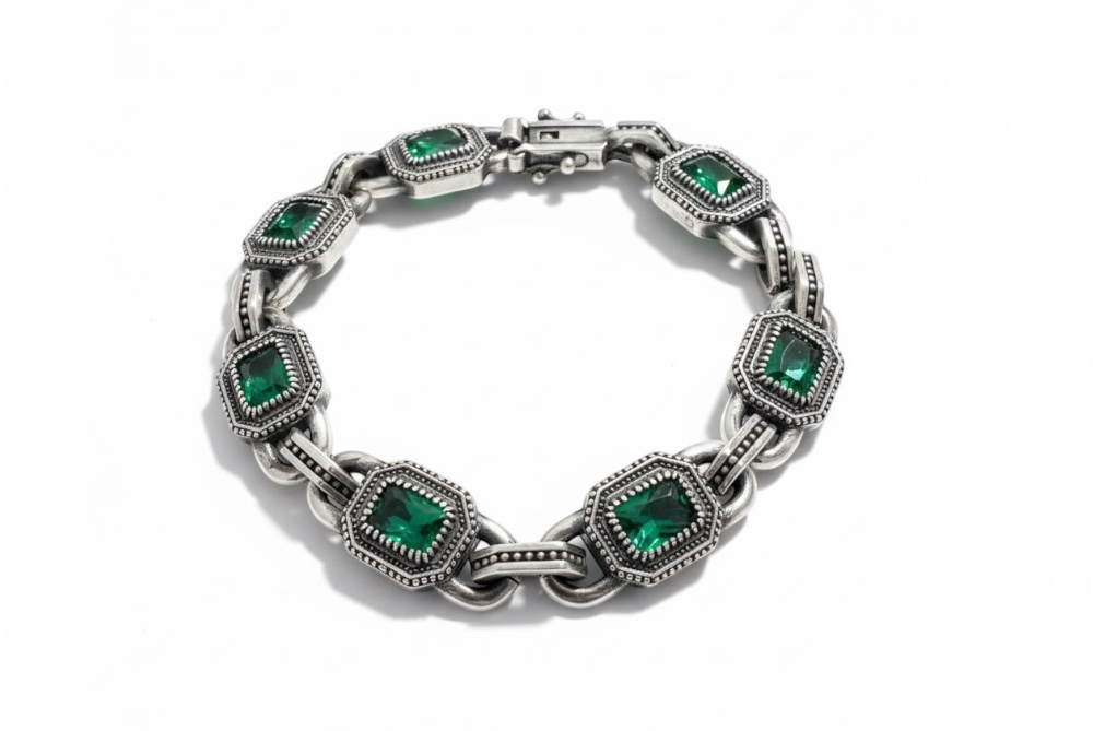 Χειροποίητο βραχιολi                         αλυσίδα με                                ταγε πέτρες από                              πρασινο ζιργκον
