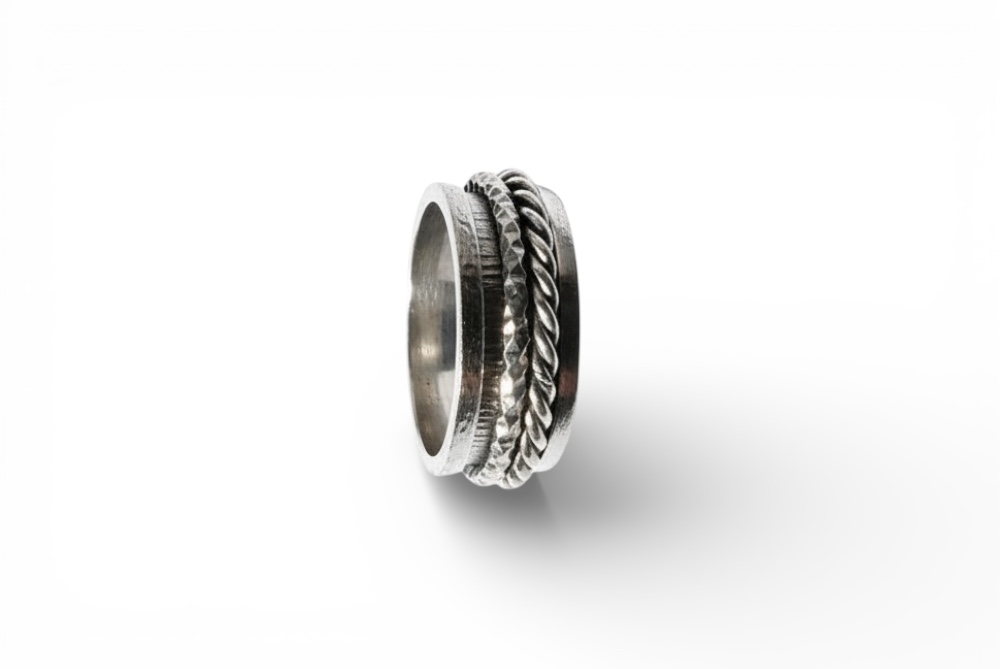 Χειροποίητο δαχτυλιδι με βερακια στο κεντρο που γυρνανε απο ασημι925
