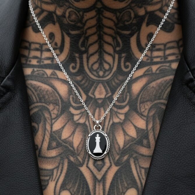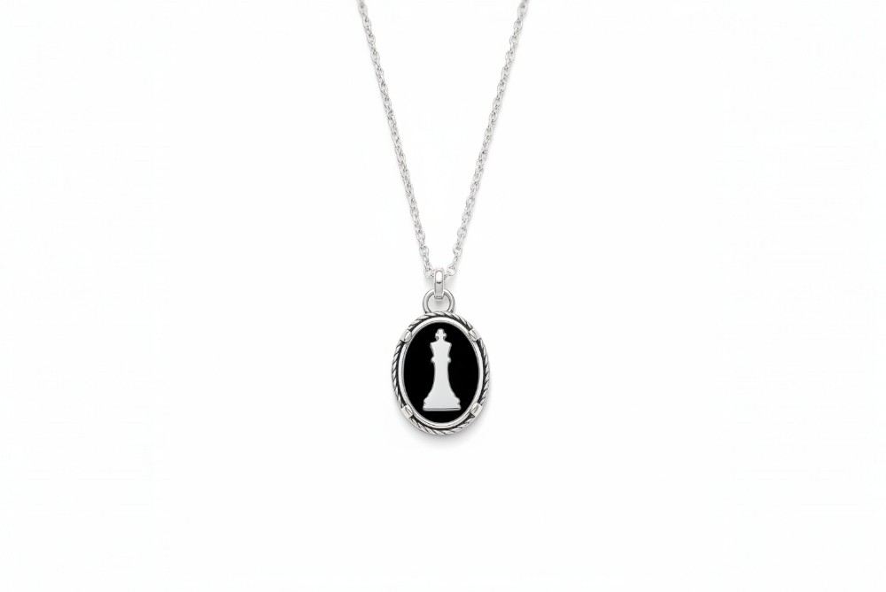 Βασιλιας κρέμαστο απο ασημι925  μαύρο ονυχα και ατσάλινη αλυσιδα
