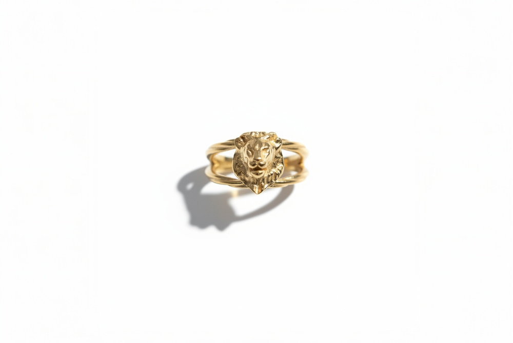 Δαχτυλίδι με κεφάλι από λιοντάρι από επιχρυσαωμενο ασήμι 925 (το δαχτυλίδι έχει αυξομείωση)