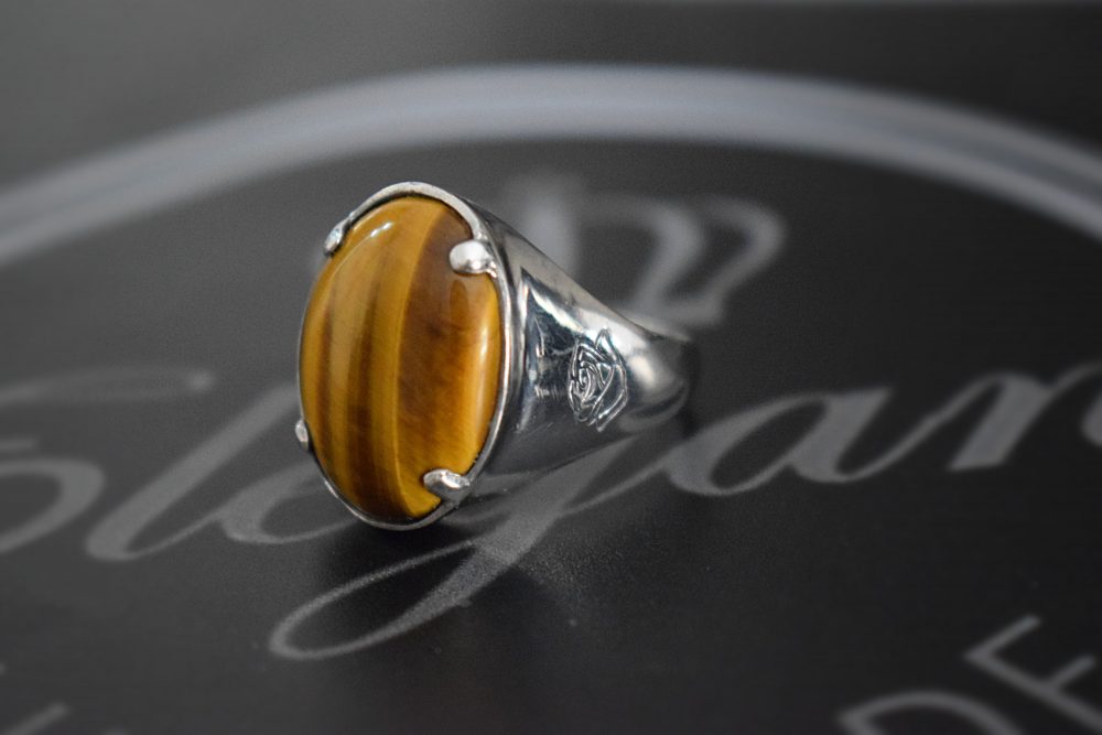 Χειροποίητο δαχτυλίδι οβάλ από επιπλατινωμένο ασήμι 925º με ορυκτή πέτρα μάτι του τίγρη