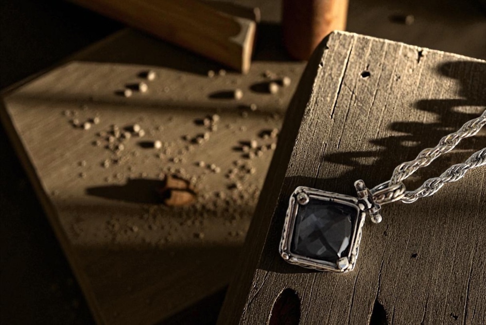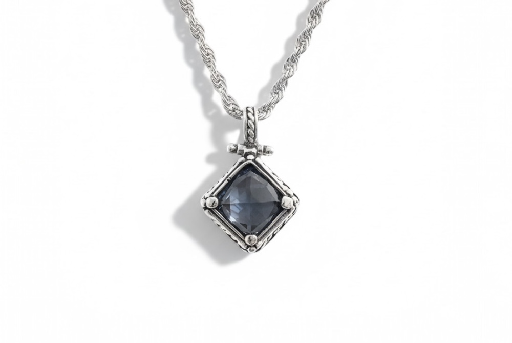 Ρόμβος κρεμαστό απο ασημι 925 με αιματιτη και στριφογυριστρη αλυσίδα από ατσαλι κ ασημενιο κουμπωμα