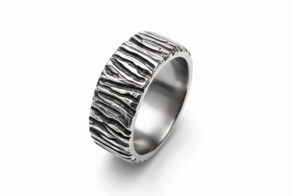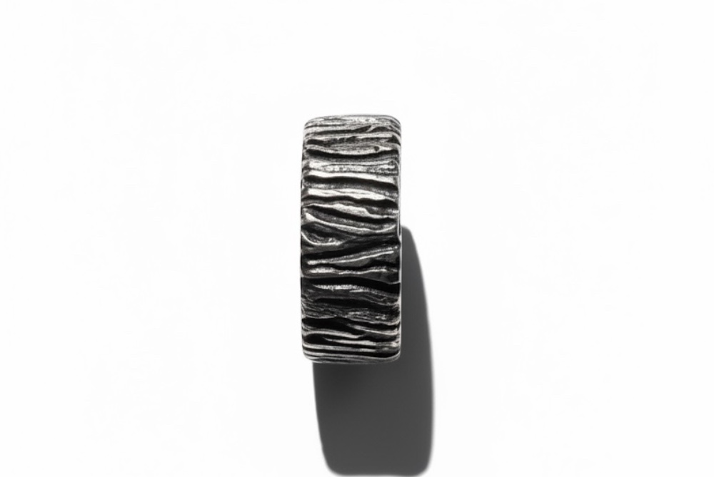 Χειροποίητο Δαχτυλίδι από ασήμι 925 με όψη ξύλου οξειδωμένο