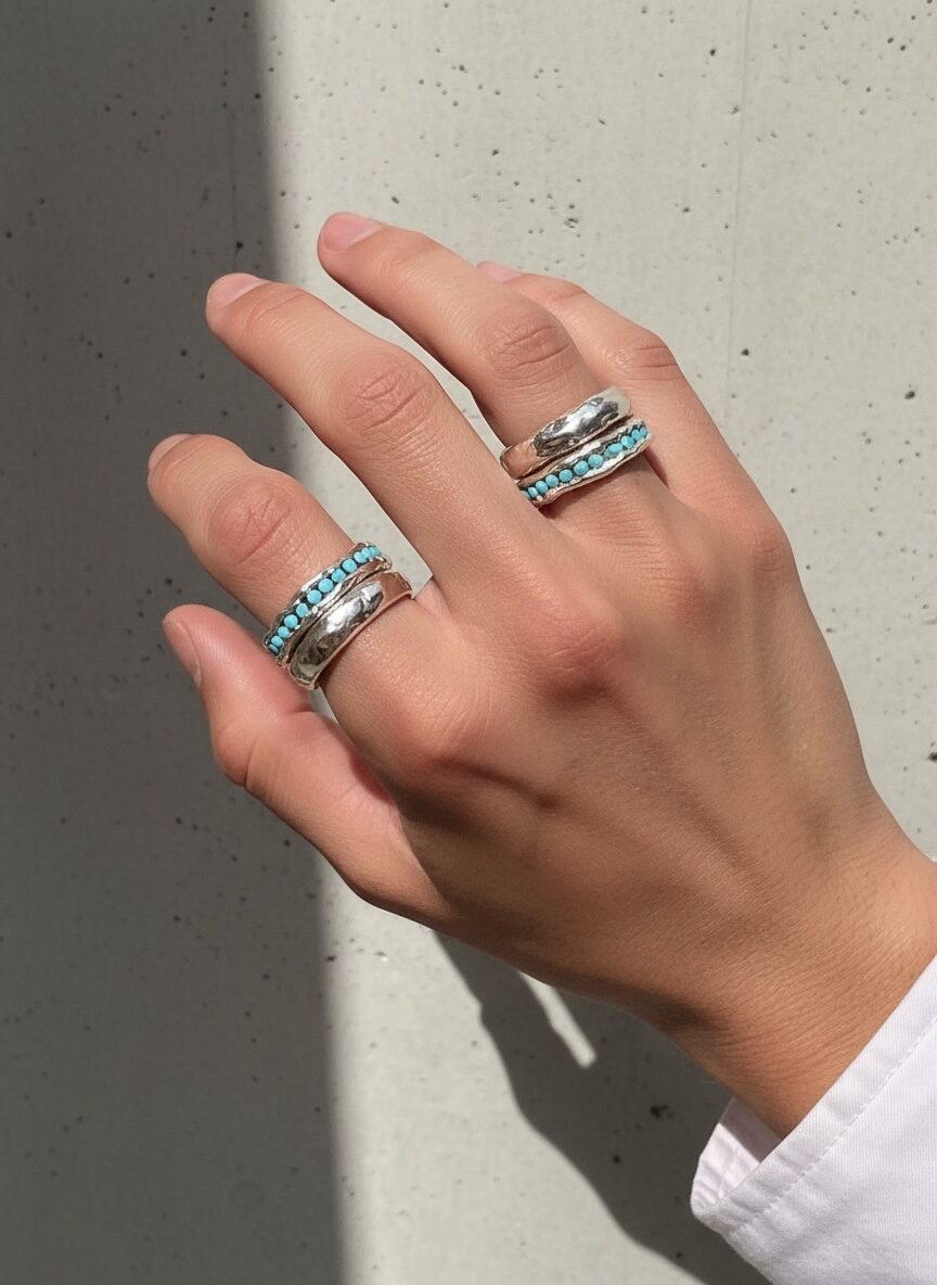 Δαχτυλιδι βέρα διπλή με ολο τυρκουαζ ζιργκον