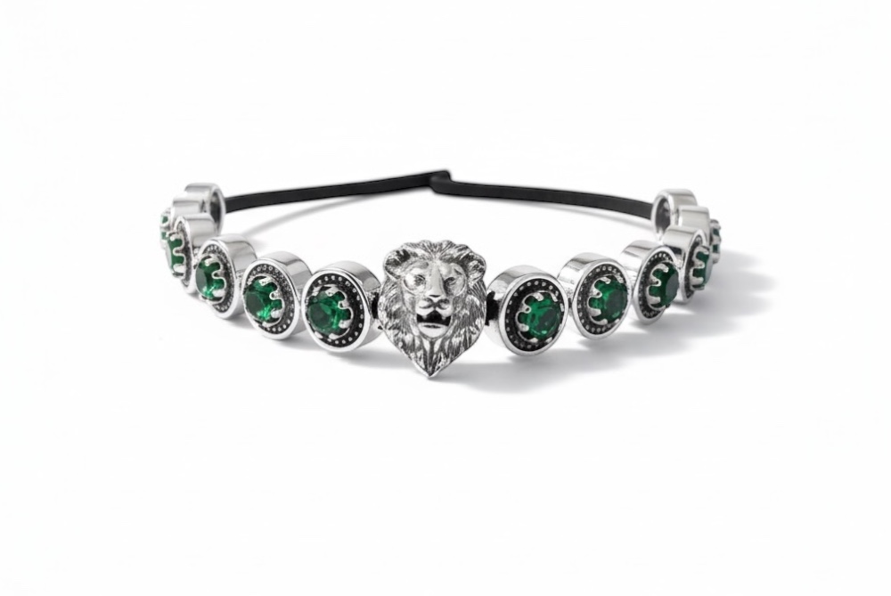 Χειροποίητο βραχιολι με λιοντάρι και πετρες πρασινες απο ζιργκον