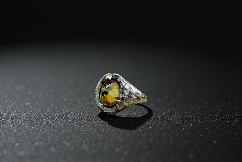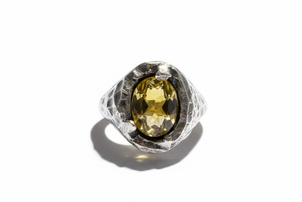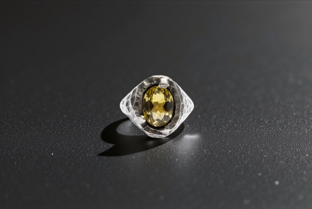 Scratched ring silver 925 with yellow stone from zirgon