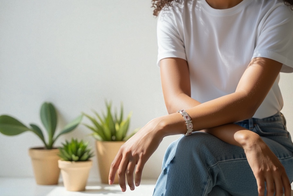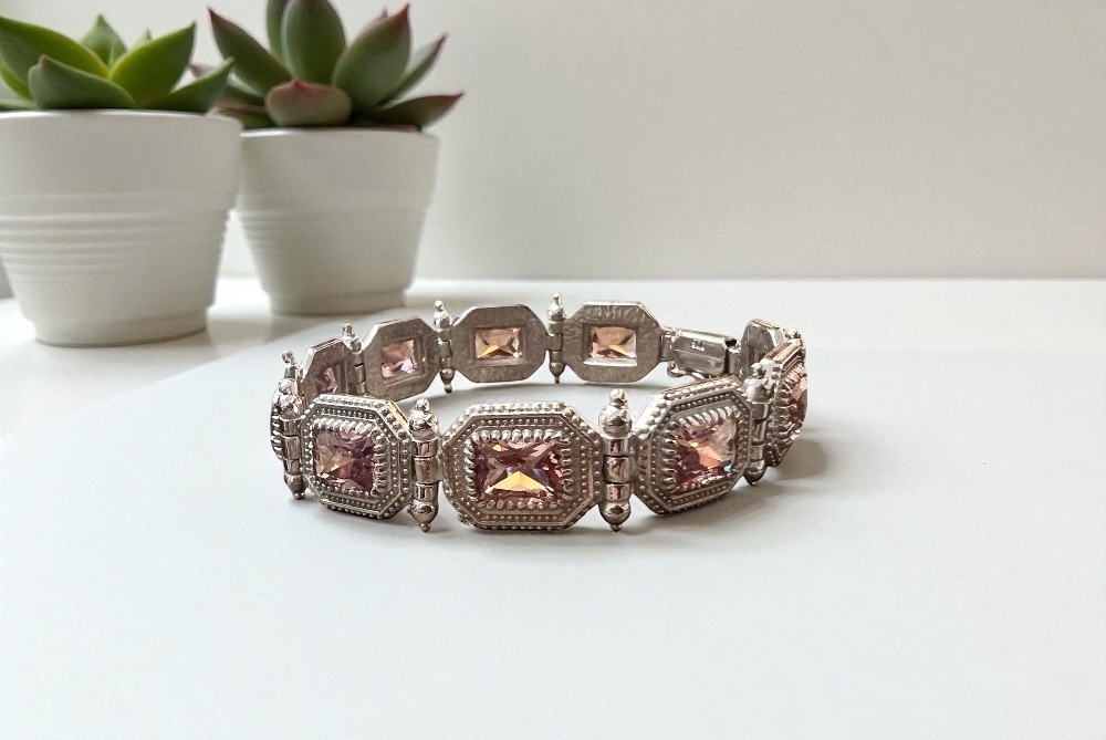Χειροποίητο βραχιόλι απο ασημι 925 με πετρες απο ζιργκον σε μεγεθος 5χ7 mm