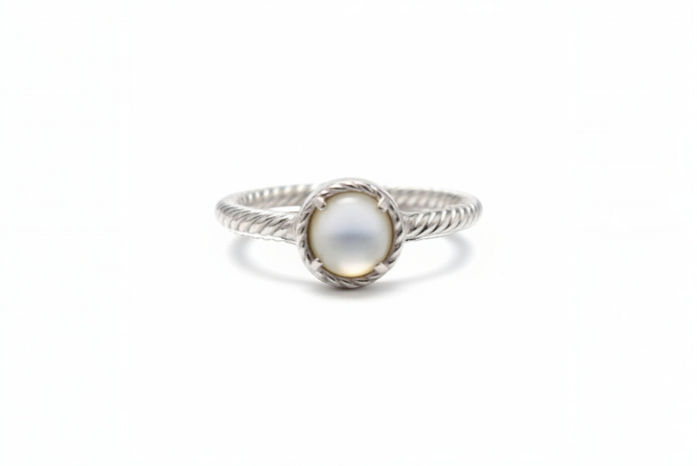 Χειροποίητο δαχτυλίδι απο πλατινωμενο ασημι 925 και πετρα λευκη φιλντισι