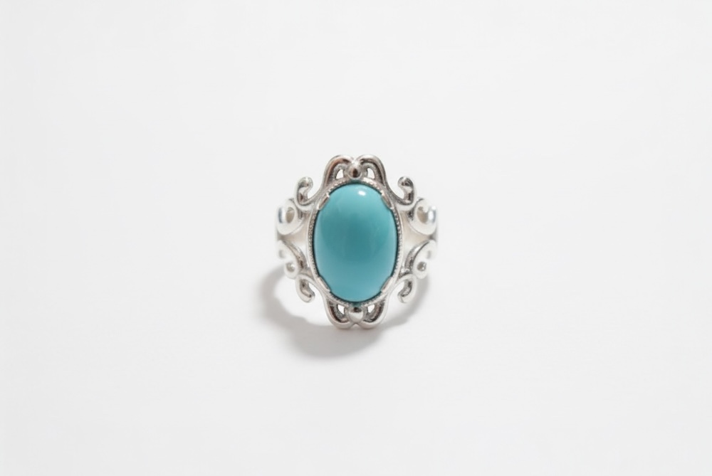 Χειροποίητο δαχτυλίδι vintage απο επιπλατινωμενο ασημι925 με τιρκουαζ πετρα απο γυαλι