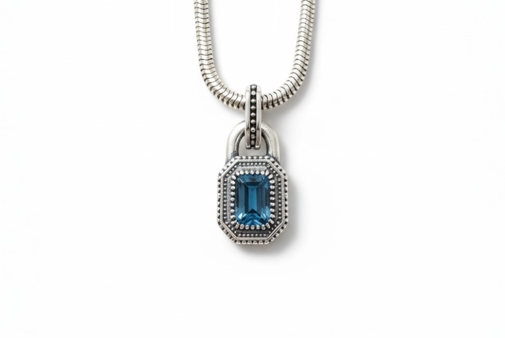 Κρεμαστό με london blue topaz ταγε από ασήμι 925 και αλυσίδα φίδι από ατσάλι